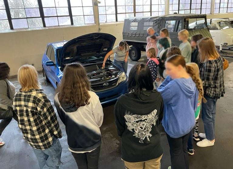 While we currently host at the Lane Motor Museum, we can also come to you. All ages are welcome. We can design other curriculums to meet your troops' needs.